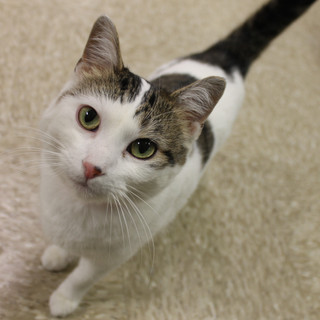 Mary is a sweet gal who has a cute face and a playful purrrsonality. She was born as a stray and came to us to find her furrever home. She loves to chase the laser pointer and is a wonderful lap cap! Stop in today to come meet Miss Mary! EDITED TO ADD: We have decided to keep Mary on as our Cat of the Week for another week. We really want to see her go to her forever home. We have added her to our free-roaming Living Room and she is LOVING IT! Her personality is so vibrant and she is truly a spunky girl who just loves to play and explore. Stop by to meet Mary!